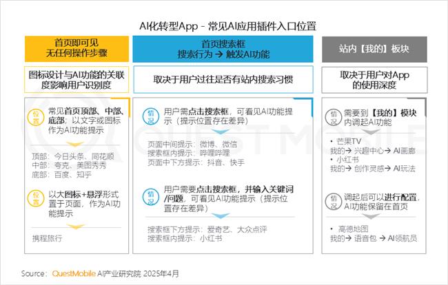 6、目前AI功能入口大致可分为三种环境,吸引诸如微信、DeepSeek也加快了保守App正在AI化上的转型节拍;