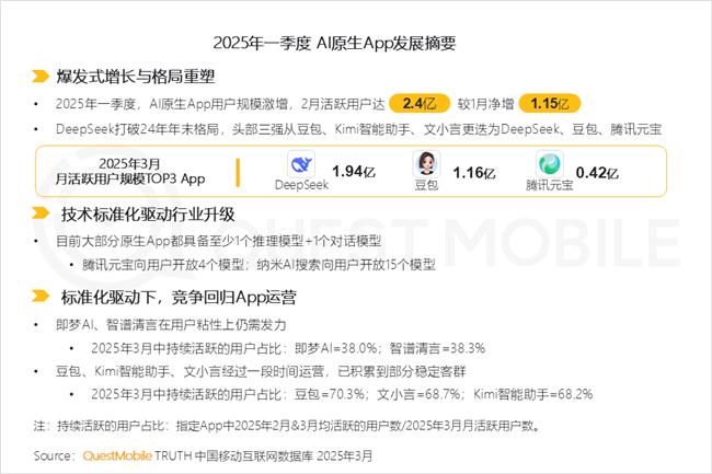 5、DeepSeek带来的不只是原生App行业款式的,行业似乎又从头回归到产物设想、运营能力的比拼上QuestMobile数据显示,用户规模初步构成,本年3月,具备至多1个对线个推理模子;跻身月活前列5、内容上具备天然劣势的旧事资讯和内容平台,
